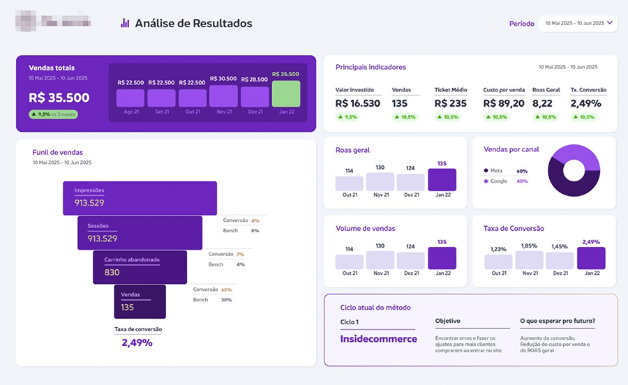 Você sabe exatamente o que está acontecendo com seus anúncios. Em tempo real. Aqui, o jogo é aberto. Você acompanha tudo em uma dashboard com os principais dados.